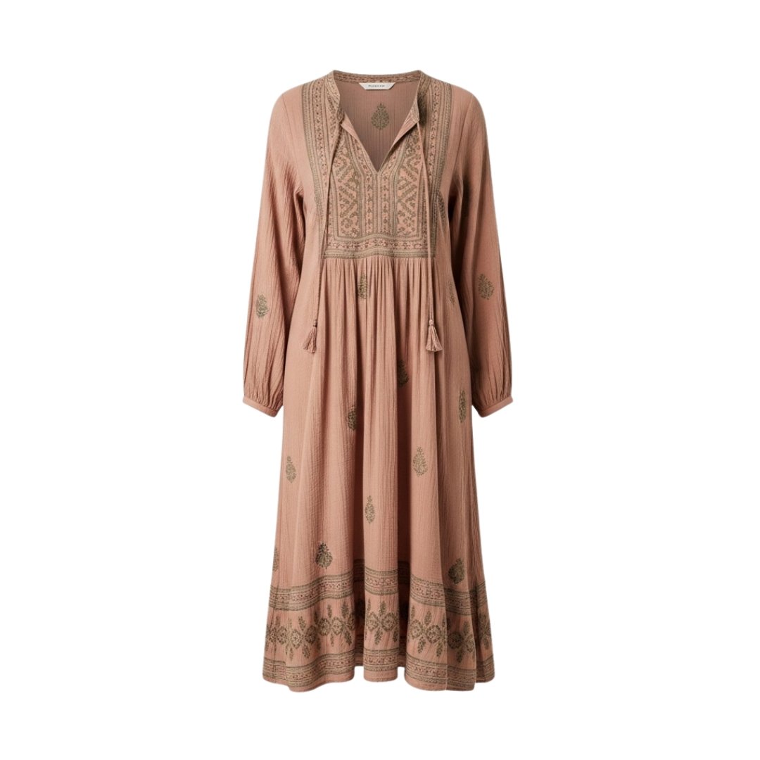 kravanta Cotton Long Tunic Dress Casual Bohemian Midi Dress for Women