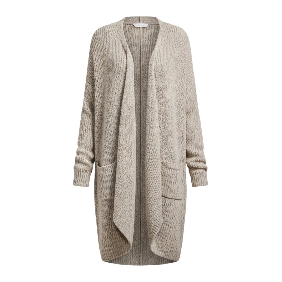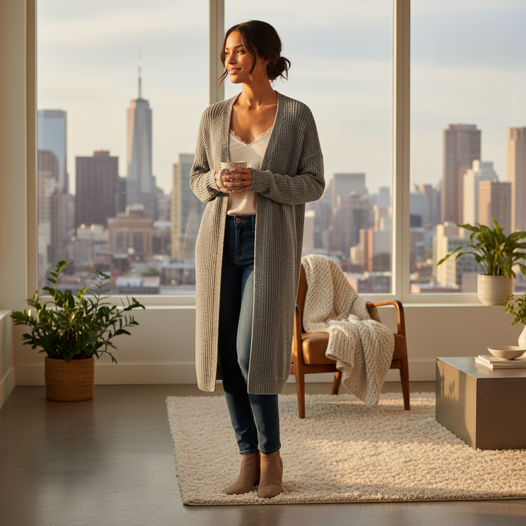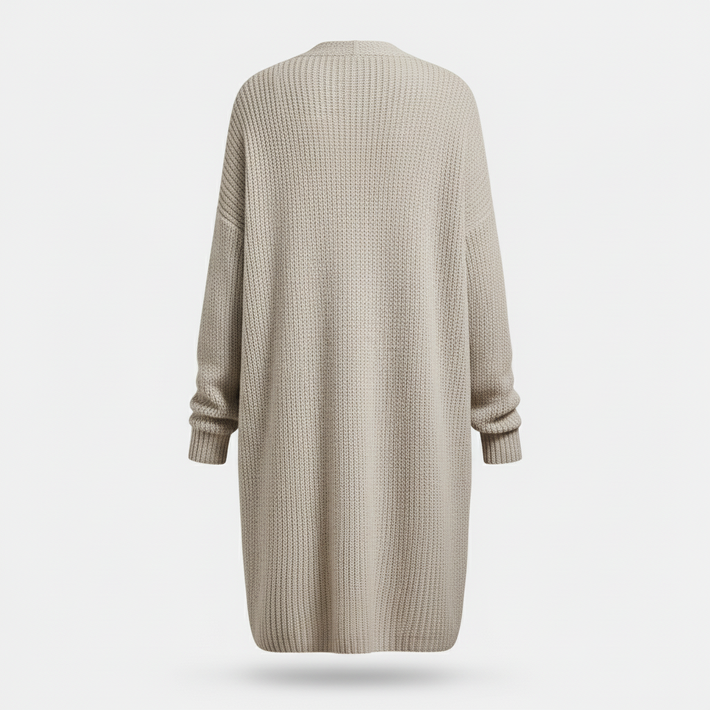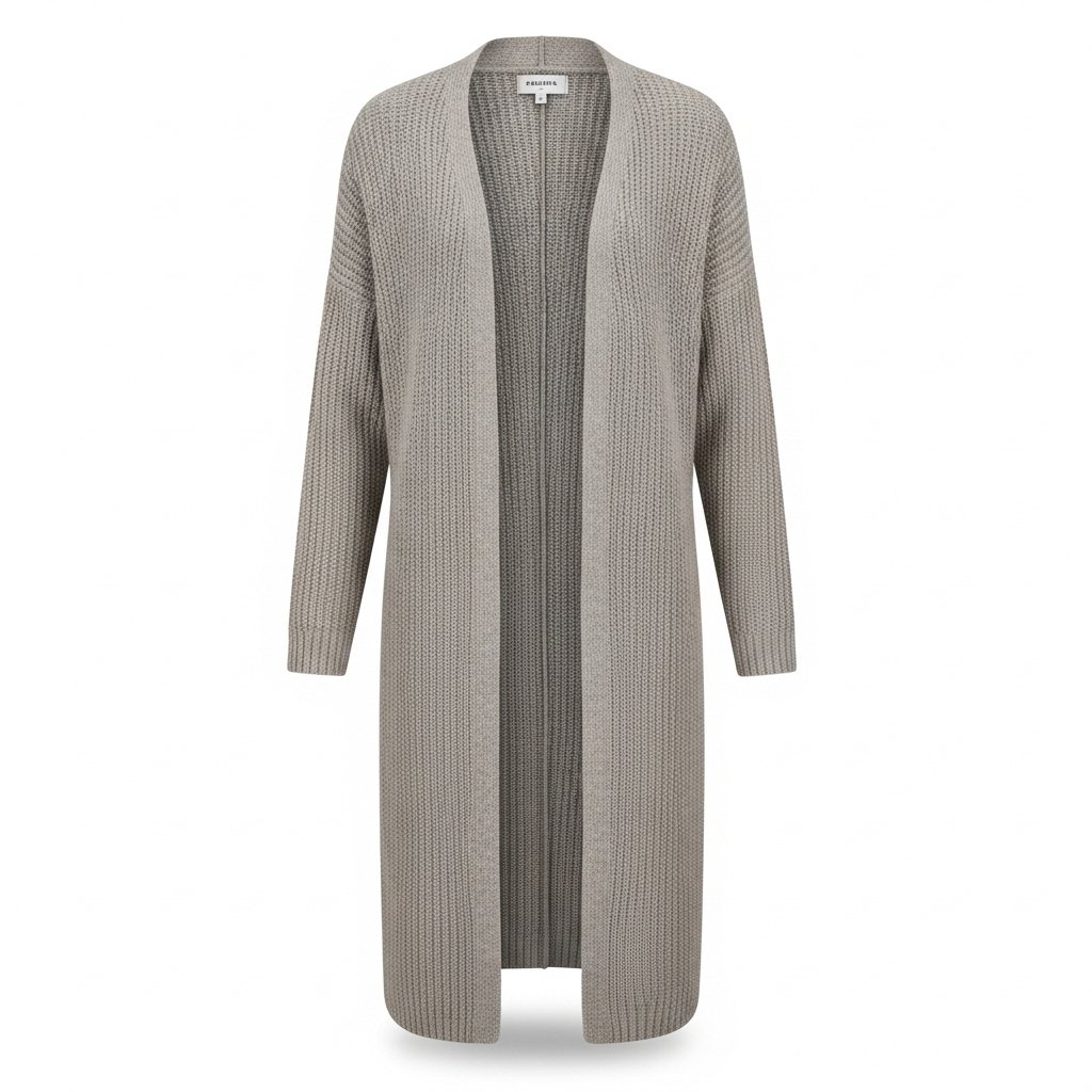 A cozy, elegant long cardigan crafted with soft knitted fabric — perfect for layering, everyday comfort, and a sophisticated winter style.